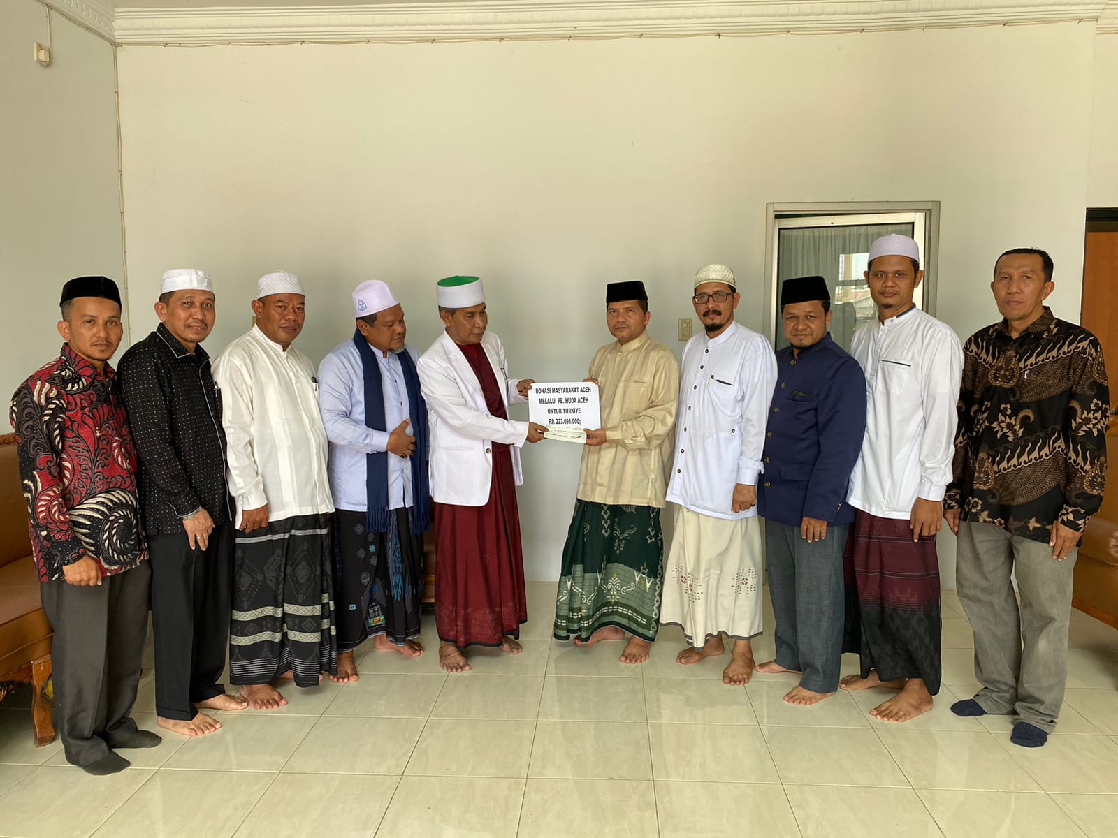 Banda Aceh – Ketua Himpunan Ulama Dayah Aceh (HUDA), Tgk. H. Muhammad Yusuf A. Wahab (Tu Sop Jeunieb) menyerahkan donasi untuk korban gempa Turkiye melalui “Solidaritas Aceh Turkiye” pada Kamis pagi 13 April 2023 di Banda Aceh.