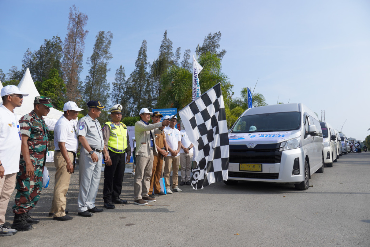 Aceh Utara – PT Pupuk Iskandar Muda melepas keberangkatan para pemudik yang ikut dalam program “Mudik Bersama BUMN 2023” dengan moda transportasi mini bus bertempat di Gapura Pupuk Iskandar Muda, pada Selasa, 18 April 2023.
