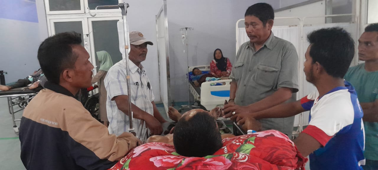 MUKHTARUDDIN (42) Desa Pucok Alue Seuleumak, Kecamatan Paya Bakong, Kabupaten Aceh Utara, terbaring lemas di Rumah Sakit Umum Cut Meutia, usai diamuk kawanan gajah yang masuk ke kebunnya.