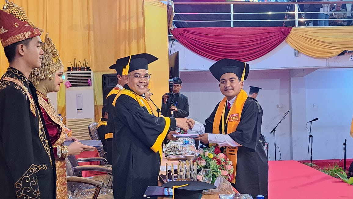 “Jumlah lulusan Teknik Kimia sebanyak 145 orang lulusan, Teknik Elektro 217 orang lulusan, Teknik Mesin 132 orang lulusan, Tata Niaga 167 lulusan, Teknologi Informasi dan Komputer 107 orang lulusan dan Teknik Sipil 108 lulusan,” terangnya