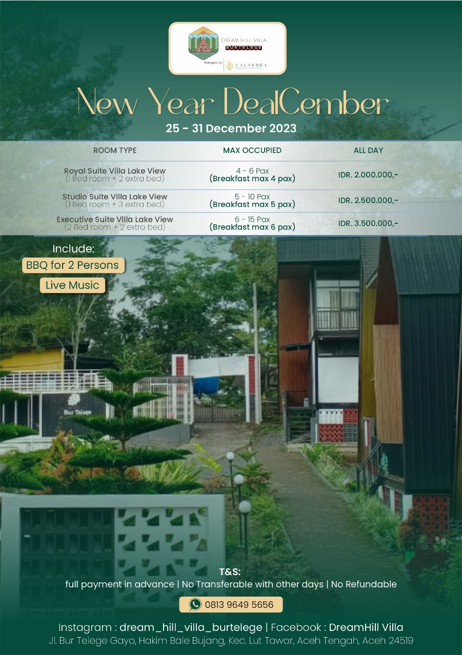 Namanya Dream Hill Villa and Cafe Burtelege. Managed by Calandra Hospitality Management di Desa Hakim Bale Bujang, Kecamatan Lut Tawar, Kabupaten Aceh Tengah. Berada di ketinggian 1.450 meter dari permukaan laut, membuat lokasi destinasi wisata ini menjadi tertinggi di Kabupaten Aceh Tengah.