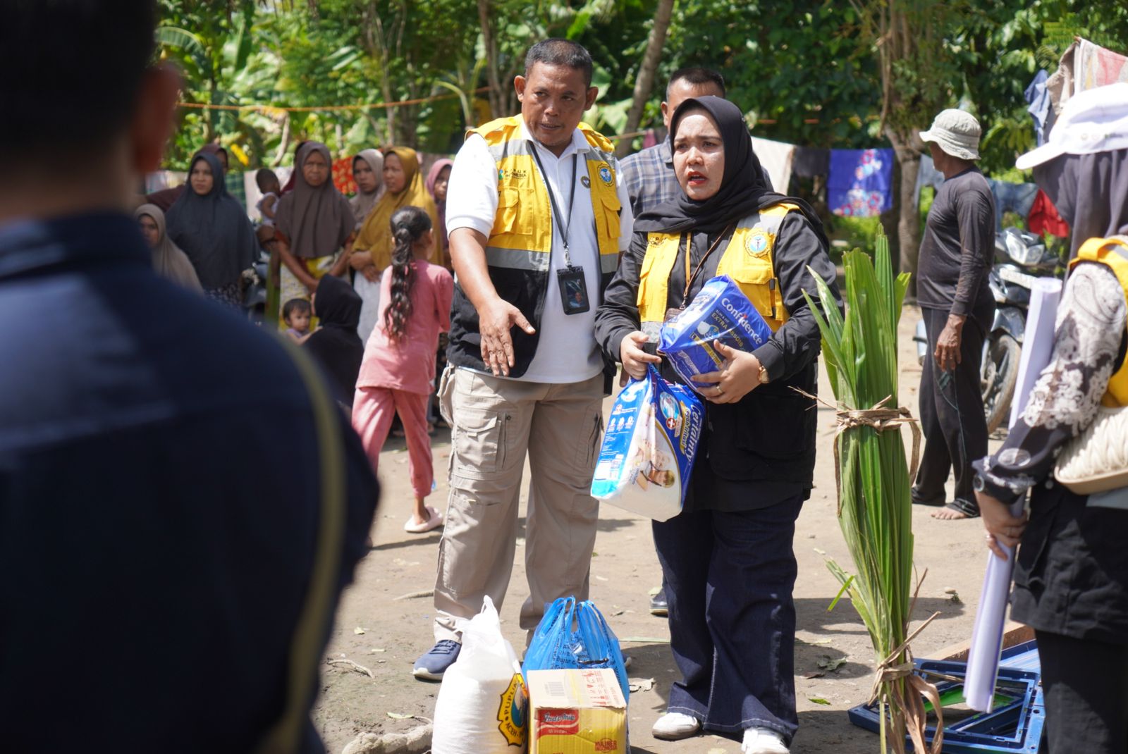 Dedi mengatakan bantuan yang diserahkan itu berupa beras 20 sak ukuran 10 Kg, Telur 30 papan, Indomie 30 dus, Minyak Goreng, popok bayi, popok lansia, perlengkapan wanita dan terbal sebanyak dua unit.