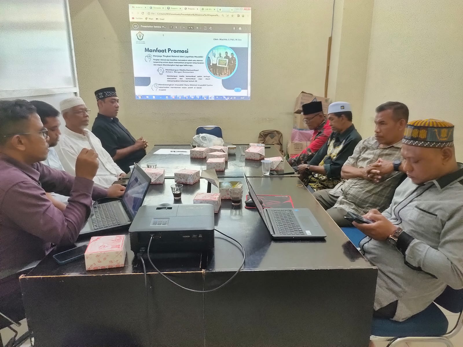 Materi komunikasi promosi disampaikan oleh Muchlis, M. Sos, salah dosen Ilmu Komunikasi Universitas Malikussaleh yang membahas tentang strategi dan teknik komunikasi dalam mengajak muzakki (orang yang menunaikan zakat) agar peran dan fungsi baitul mal di gampong dapat lebih berkembang lagi. Baik dari jumlah muzakki maupun jumlah zakat infaq dan shadaqah yang terkumpul lebih banyak lagi.