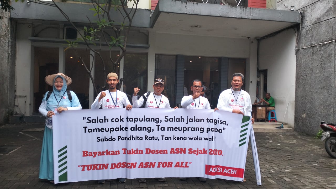ACEH UTARA– Ratusan dosen berstatus Aparatur Sipil Negara (ASN) di Provinsi Aceh mengumpulkan uang untuk mengirimkan perwakilan mereka berdemonstrasi di depan istana negara, Jakarta, hari ini, Senin (3/1/2025).