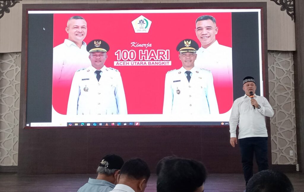PEMERINTAH Kabupaten Aceh Utara memaparkan capaian program kerja selama 100 hari pertama masa kepemimpinan Bupati Aceh Utara, Ismail A. Jalil, S.E., M.M., akrab disapa Ayahwa dan Wakil Bupati Tarmizi, S.I.Kom., disapa Panyang.