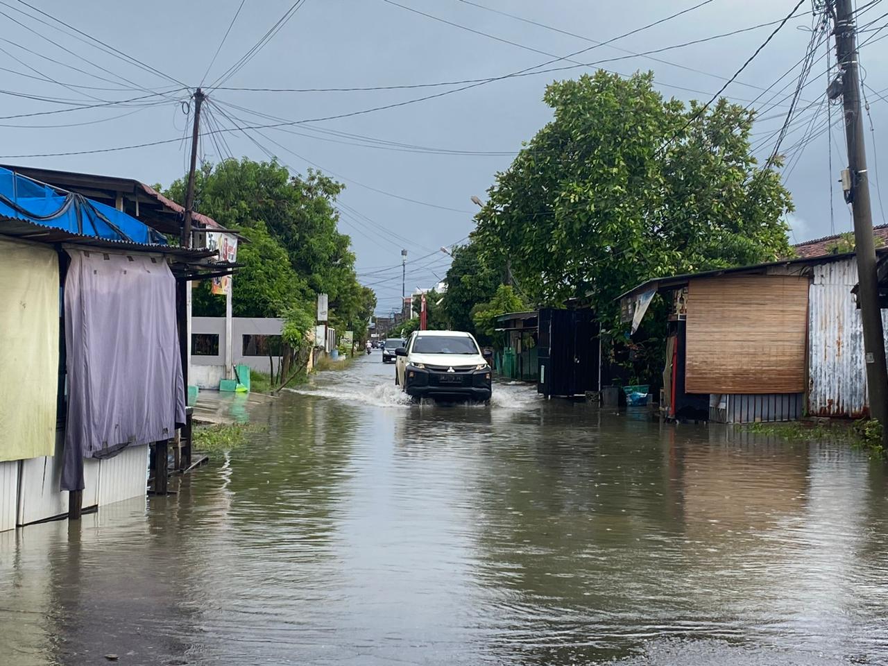 “Banjir rendam jalan, kahwatir masuk mesin motor airnya. Bisa rusak kendaraan,” terang Rizki.