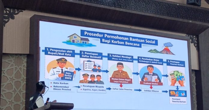 Setelah itu data akan dikirim ke Gubernur lalu ke Menteri Dalam Negeri. Baru dikirim ke Kementerian sosial dan divalidasi khusus oleh Direktorat Jenderal Pelindungan dan Jaminan Sosial Kementerian Sosial RI. Barulah ditetapkan penerima bantuan dan disalurkan bantuan kepada korban atau ahli waris korban.