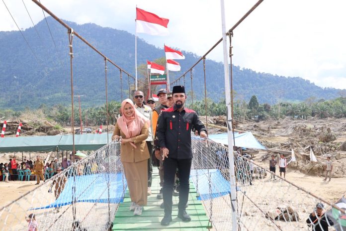 IDI – Jembatan gantung penghubung Desa Batu Sumbang dan Desa Pante Kera, Kecamatan Simpang Jernih, Kabupaten Aceh Timur, Provinsi Aceh, Selasa (24/2/2026) akhirnya selesai dibangun. Sebelumnya, berpuluh tahun antar dua desa itu hanya bisa terhubung dengan menggunakan perahu.