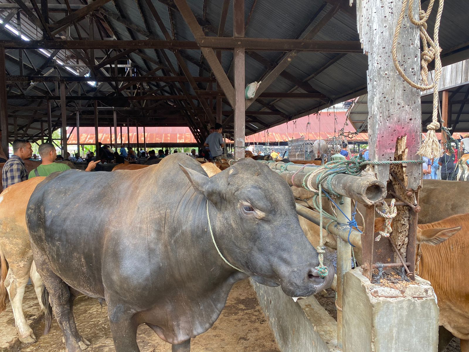Ratusan sapi berjejer di Pasar Hewan Panton Labu, Kecamatan Tanah Jambo Aye, Kabupaten Aceh Utara, Provinsi Aceh, Sabtu (14/2/2026). Biasanya,…